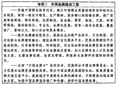 ——品牌建設(shè)取得更大進(jìn)展。品牌培育、發(fā)展、壯大的促進(jìn)機(jī)制和支持制度更加健全,品牌建設(shè)水平顯著提高,企業(yè)爭創(chuàng)品牌、大眾信賴品牌的社會氛圍更加濃厚,品質(zhì)卓越、特色鮮明的品牌領(lǐng)軍企業(yè)持續(xù)涌現(xiàn),形成一大批質(zhì)量過硬、優(yōu)勢明顯的中國品牌。
